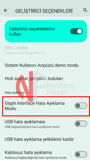 Glyph Arayüzü Hata Ayıklama Modu, Nothing cihazlarındaki Glyph ışıklarıyla etkileşim kurmak ve kontrol etmek için geliştiricilere özel bir araçtır. Bu mod, geliştiricilerin uygulamalarını test etmelerine ve Glyph ışıklarıyla nasıl etkileşim kuracaklarını anlamalarına yardımcı olur.