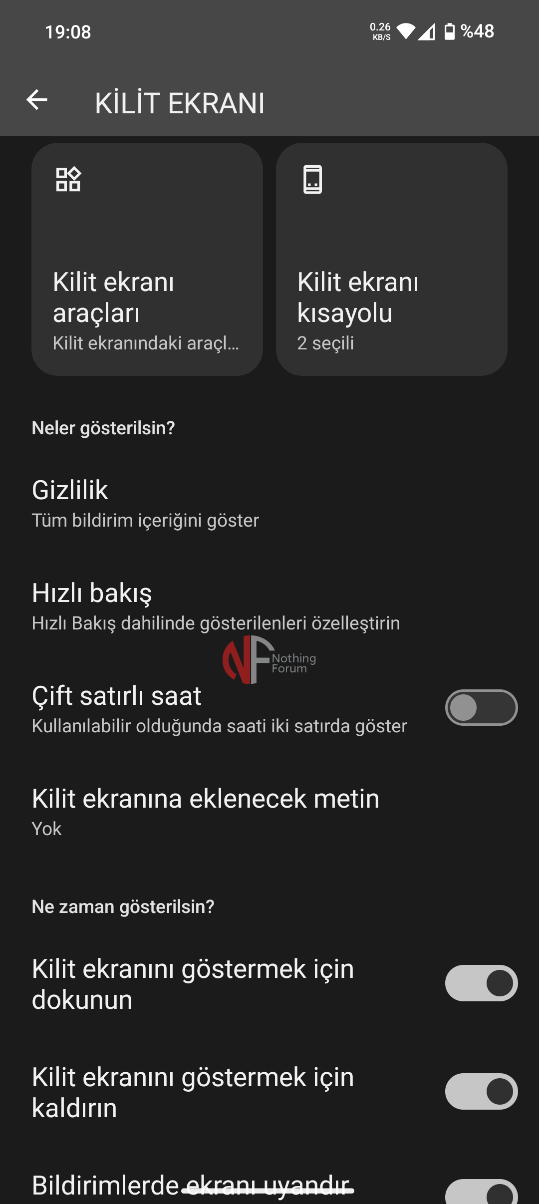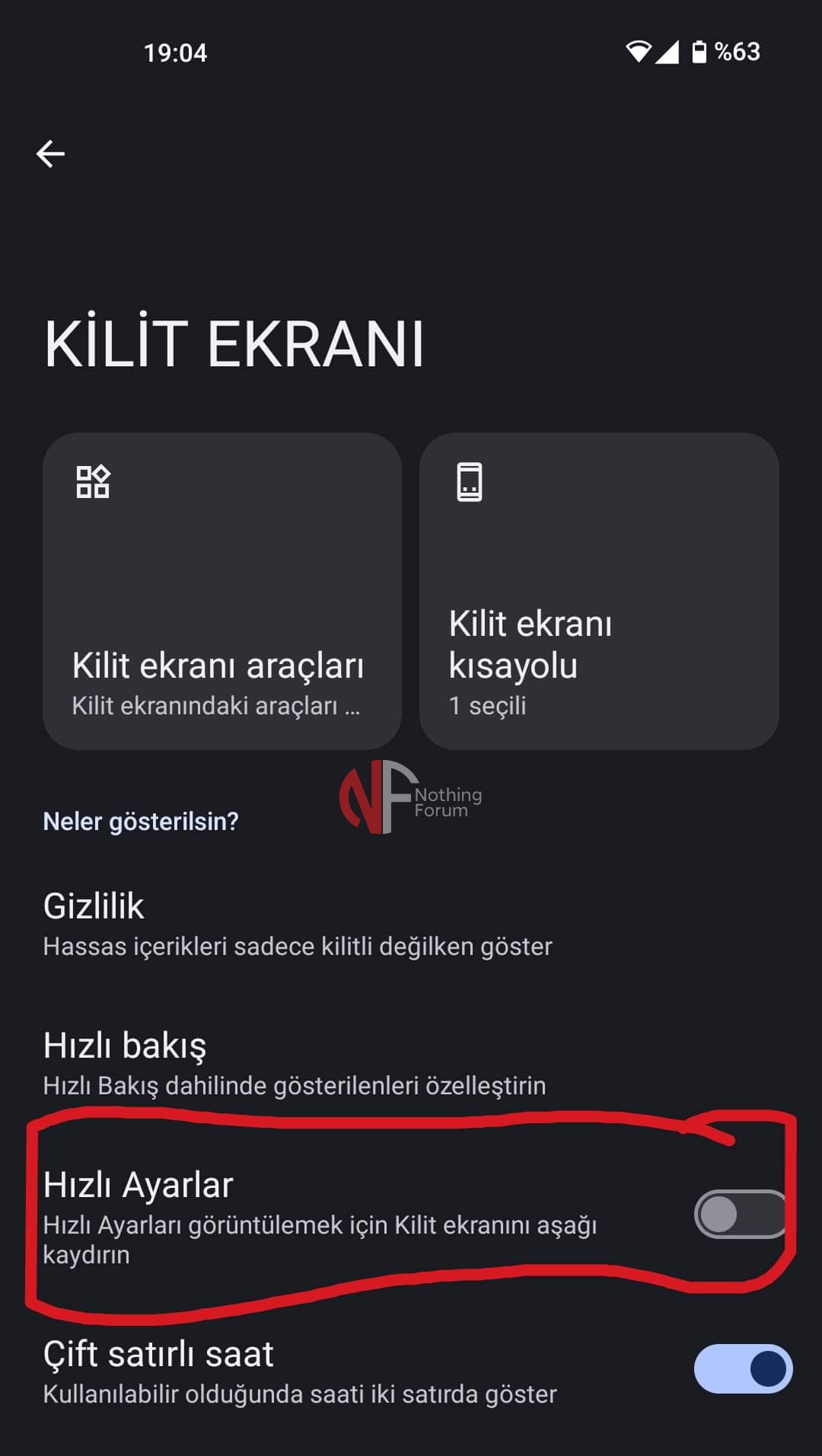 Nothing Phone 2 Kilit Ekranı Hızlı Ayarlar yok