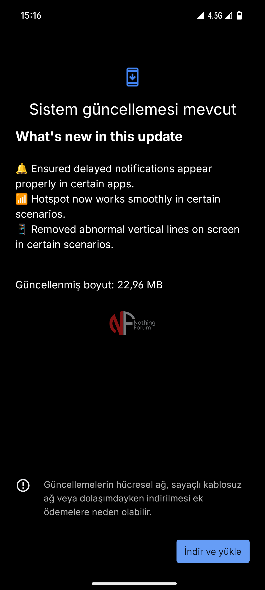 Güncellemenin boyutu oldukça küçük olup, 22,96 MB olarak belirtilmiştir. Bu sayede güncelleme işlemi kısa sürede tamamlanacak ve cihazınızın performansı etkilenmeyecektir.